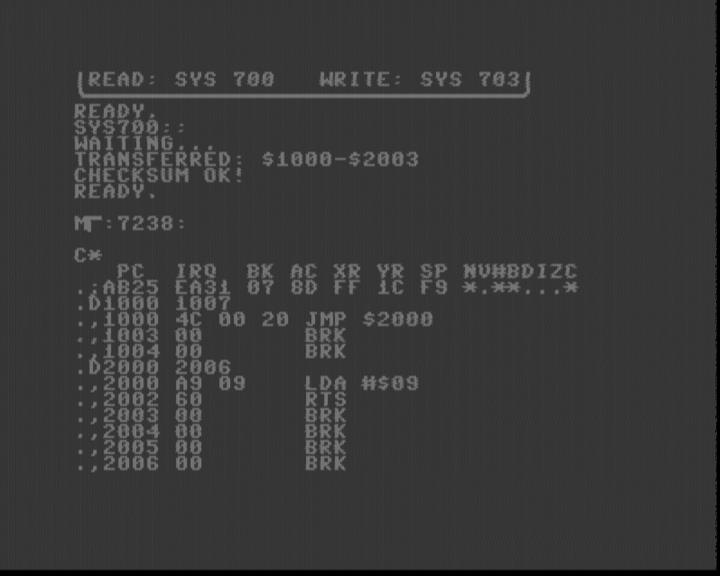 Jesli jest blad to to co mialo byc pod$2000. Jest zaraz za jmp $1000 oczywiscie tylko w przypadku transferu na 2 c64.